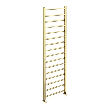 The classic Arezzo brushed brass heated towel rail is ideal for give your home the latest look in elegant contemporary design. With a straight profile and finished in a eye-catching, brushed brass this luxury stylish ladder type towel rail brings a real quality finish to any bathroom. Perfect for keeping your towels toasty warm as well as creating a focal point in your bathroom.