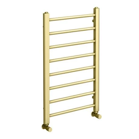 The classic Arezzo brushed brass heated towel rail is ideal for give your home the latest look in elegant contemporary design. With a straight profile and finished in a eye-catching, brushed brass this luxury stylish ladder type towel rail brings a real quality finish to any bathroom. Perfect for keeping your towels toasty warm as well as creating a focal point in your bathroom.