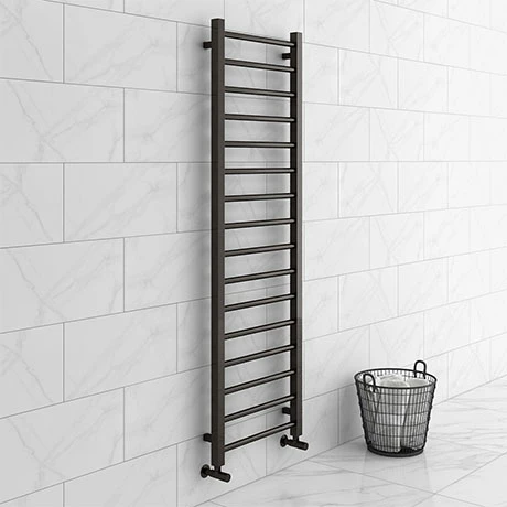 The classic Black Nickel Brooklyn heated towel rail, ideal for giving your home the latest look in elegant contemporary design. With a straight profile and finished in a dark yet shiny black nickel this luxury stylish ladder type towel rail brings a real quality finish to any bathroom. Perfect for keeping your towels toasty warm as well as creating a focal point in your bathroom.