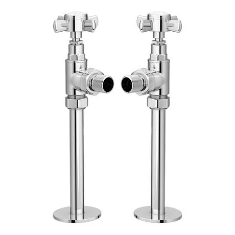 (1) Pair of Traditional Chrome Plated Angled Radiator Valves with Pipes & Concealing Plates