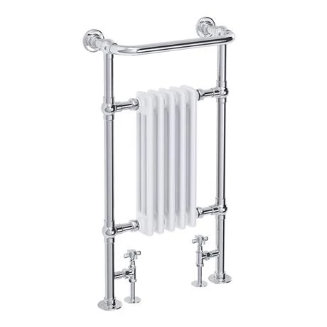 Combining classic style with outstanding functionality, the Chatsworth Traditional Heated Towel Rail Radiator brings a timeless traditional look to both period and contemporary bathrooms. Fed up of wet towels? Let them quickly dry after use on this traditional towel rail that also heats up the room for extra cosiness. The 538mm wide radiator has a sturdy cast iron centre with a vitreous white enamel finish that’s hardwearing and easy to clean. The solid plated chrome frame gives an elegant polished effect, and it comes with fixing screws for stress free installation.