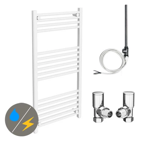 - Fits any 1/2″ BSP wet system towel warmer to give heating on demand when the central heating system is off.