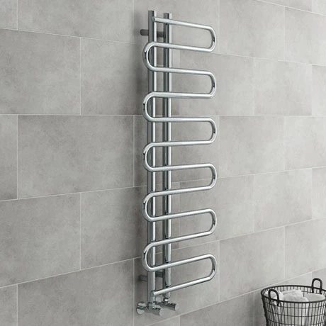 The 1310mm high Kai designer heated towel rail features a unique snaking design. Manufactured from durable steel with a quality polished mirror chrome finish, this stylish towel rail provides superb heat output which will gently warm towels and your bathroom or cloakroom.