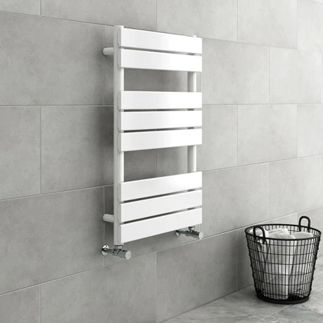 Enjoy fluffy warm towels after bathing with the 490mm wide Milan White Heated Towel Rail. Combining functionality with style, the flat tubes and straight profile of this classic towel rail radiator will bring a designer look to your bathroom. Made from hardwearing steel with a timeless white finish, this sleek and slender wall hung modern towel rail offers superb heat output so it will gently warm the room as well as your towels or favourite bathrobe. It runs off the central heating and is easy to install thanks to the fixing kit included