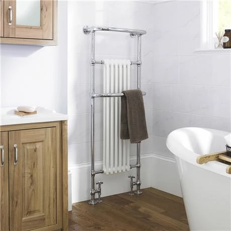 A luxurious large traditional radiator from Old London, chrome plated with 6 x 2 column white period style radiator insert. Manufactured to the highest standards and constructed from strong chrome plated durable steel. Designed to complement Old London’s collection of classic bathroom sanitary ware and furniture. Beautifully engineered by Old London to integrate into any traditional bathroom. Features quality construction with great heat output, this versatile radiator is compatible with all domestic central heating systems. Supplied with fixing screws.