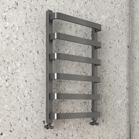 A stunning modern vertical designer towel in a modern brushed black nickel finish, the Venice towel rail features 6 innovative D-shaped rails providing a stylish way to keep your towels warm, as well as neat and organised. The Venice range of sleek towel rails are manufactured using the finest materials and offers outstanding heat output. Ideal for any contemporary setting or interior.