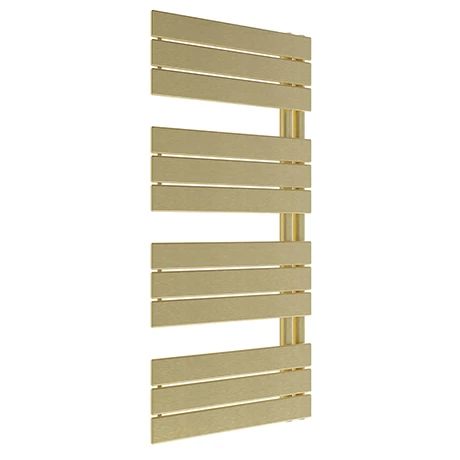 Make a statement with our stylish brushed brass finish, the Venice Designer Pannello Heated Towel Rail has 16 horizontal offset flat panels that will keep your bathroom – and your towels – lovely and warm. This 500mm wide modern towel rail is finished in high quality, brushed brass plating, for durability and providing a stylish luxury look for years to come. Since it’s wall mounted, it’s a convenient choice for more compact rooms where there’s not much floor space. This towel rail radiator comes with a fixing kit with plugs and vents, so you can have it up and ready in no time.